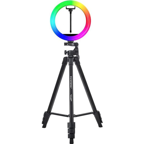 The MJ26 RGB LED lamp is a ring LED lamp with smartphone holder, table stand and full size stand.
